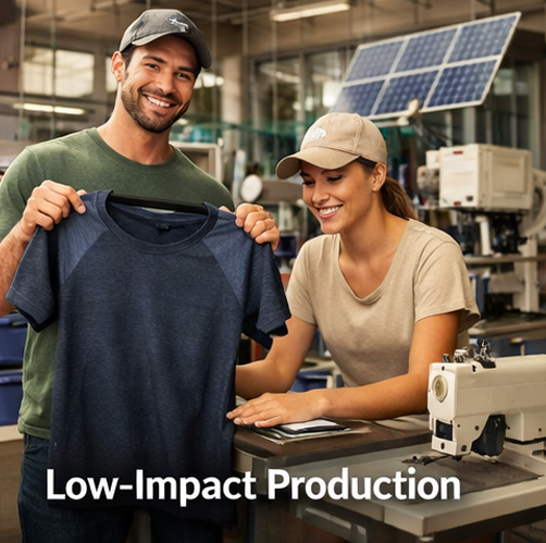 We use recycled polyester (rPET) and organic cotton from certified, eco-friendly vendors who follow sustainable and environmentally responsible practices.